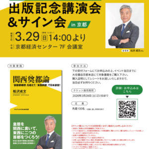 拙著では、政治機能を中心とする「政治の首都・東京圏」と、歴史と伝統に裏打ちされた「文化の首都・関西圏」、この二つの首都を両輪として東京一極集中を打破し、日本をさらに発展させていく、新しい国家ビジョンを提言しています。